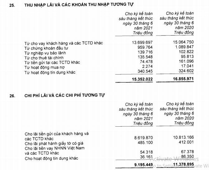 Theo báo cáo tài chính hợp nhất đã soát xét, thu nhập lãi thuần của Sacombank 6 tháng năm 2021 đạt hơn 6.156 tỷ đồng, tăng hơn 12% so với cùng kỳ 2020. Nếu nguồn thu này đến từ việc mở rộng cho vay các khách hàng, nó sẽ cho thấy khả năng tăng tín dụng của Sacombank khá hiệu quả. Tuy nhiên, thực tế, thu nhập từ lãi vay và các khoản thu nhập tương tự của Sacombank chỉ đạt hơn 15.000 tỷ đồng, giảm 9% so với cùng kỳ 2020.