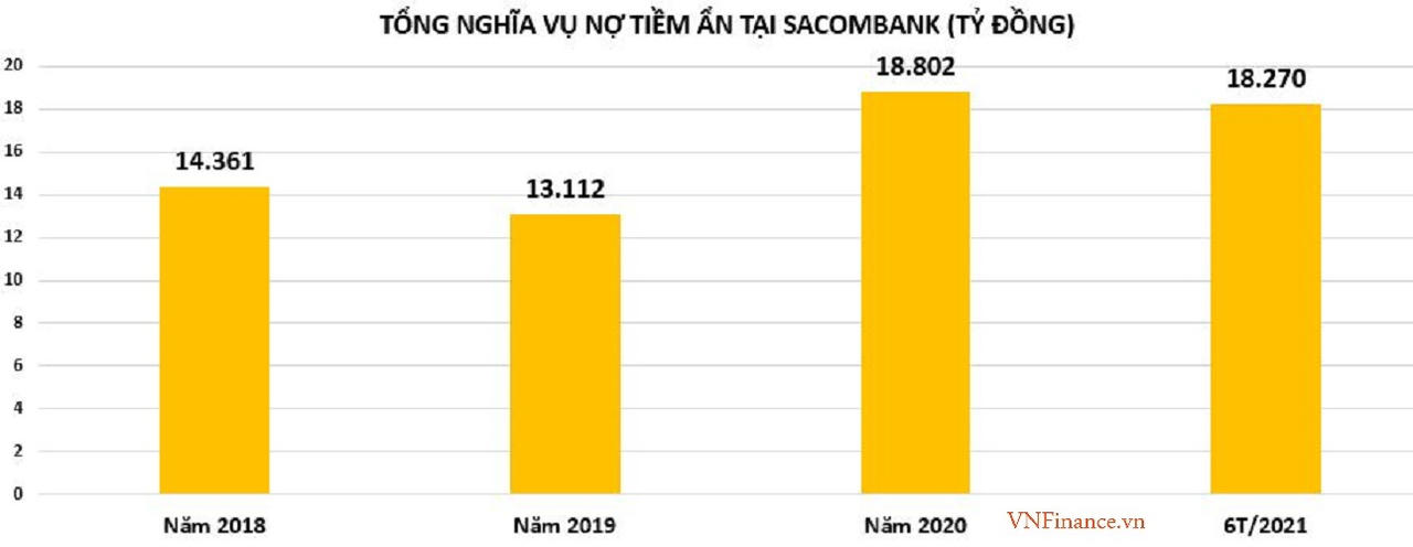 Đặc biệt, các khoản nợ tiềm ẩn nằm ngoài bảng cân đối kế toán của Sacombank cũng đang ‘lớn dần’.