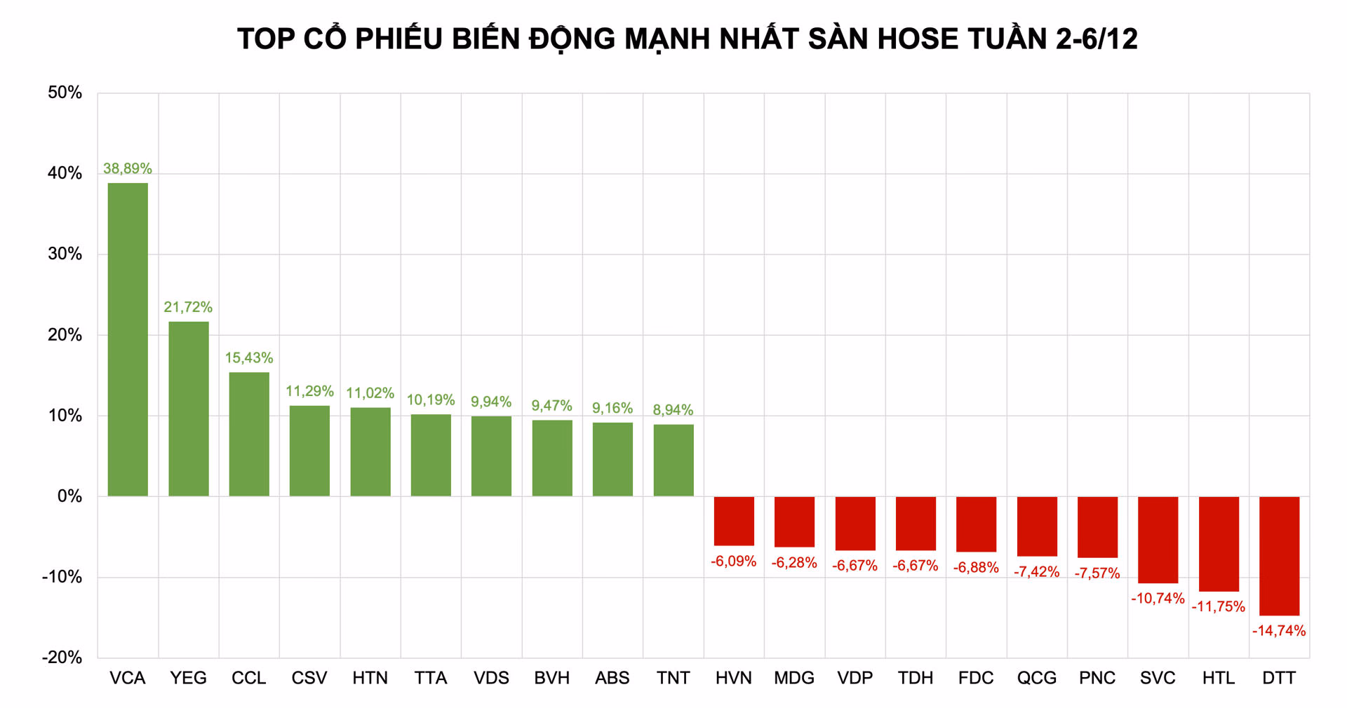Tuần giao dịch đầu tiên của tháng 12, với sự khởi sắc của thị trường chung, nhiều cổ phiếu đã bứt phá mạnh mẽ. Tuy nhiên, cổ phiếu tăng mạnh chủ yếu là các mã vừa và nhỏ.