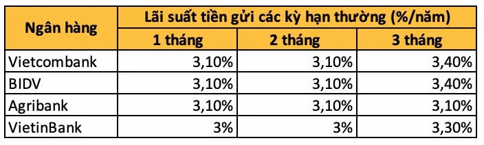 Lượng tiền gửi tại mỗi NHTM tương đương với khối lượng nhận tiền gửi đăng ký tại mức lãi suất được quỹ lựa chọn. Lãi suất tiền gửi có kỳ hạn từ 1 tháng đến 3 tháng tại các "ông lớn" ngân hàng trên dao động từ 3% đếm 3,4%/năm tuỳ từng kỳ hạn, đối với các khoản tiền gửi thông thường.