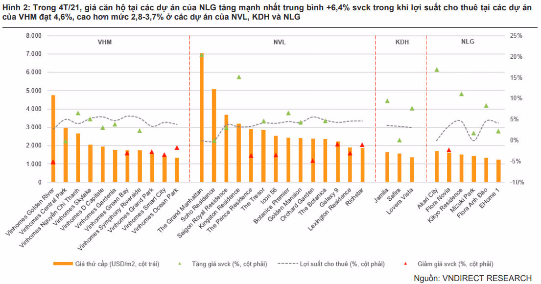 VNDirect lựa chọn cổ phiếu VHM, NLG và KDH dựa trên triển vọng ký bán 2021 cùng quỹ đất sẵn sàng sử dụng lớn.