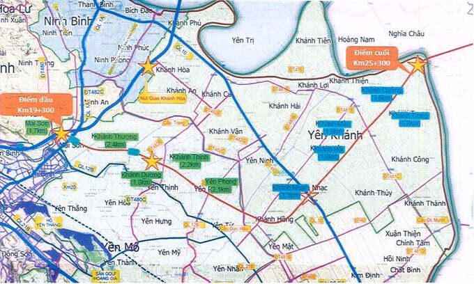 Điểm đầu tuyến tại nút giao Mai Sơn thuộc xã Mai Sơn, huyện Yên Mô, tỉnh Ninh Bình giao với đường cao tốc Bắc - Nam; điểm cuối nằm tại đầu cầu vượt sông Đáy thuộc xã Khánh Cường, huyện Yên Khánh, tỉnh Ninh Bình.
