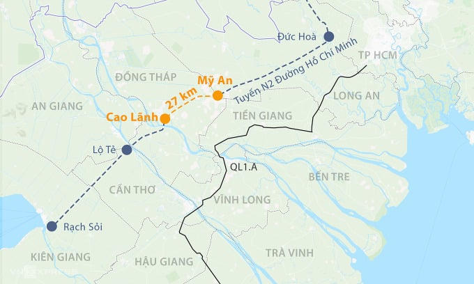 Cao tốc Cao Lãnh - Mỹ An có chiều dài gần 27km, tại Đồng Tháp, kết nối tuyến N2 và các cao tốc trục dọc, ngang miền Tây, góp phần giảm tải cho quốc lộ 1A.