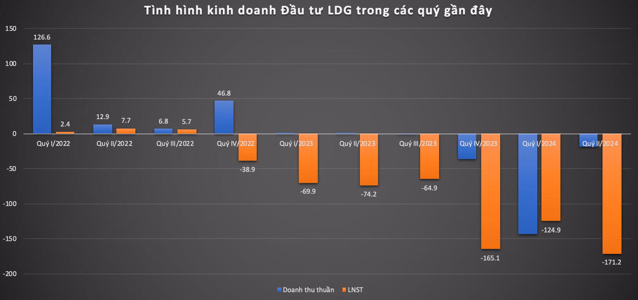 Luỹ kế trong nửa đầu năm 2024, Đầu tư LDG ghi nhận doanh thu thuần âm 149 tỷ đồng và lỗ ròng 296 tỷ đồng, trong khi cùng kỳ lỗ 144 tỷ đồng, tức tăng lỗ thêm 151 tỷ đồng.