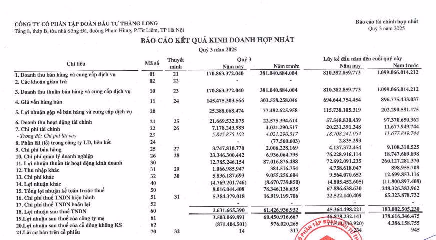 Về tình hình kinh doanh, tính chung 9 tháng đầu năm, TIG mang về doanh thu thuần 810,3 tỷ đồng, giảm 26,3% so với 9 tháng đầu năm 2024.