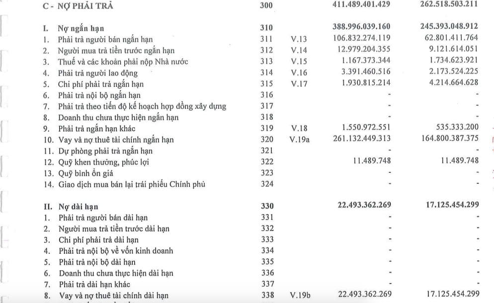 Chiếm phần lớn nợ phải trả là nợ vay và nợ thuê tài chính 283,6 tỷ đồng, gồm 261,1 tỷ đồng vay ngắn hạn và 22,5 tỷ đồng vay dài hạn. Trong khi đó, công ty hiện có gần 500 triệu đồng tiền mặt và các khoản tiền gửi ngân hàng (bao gồm ngắn hạn và không kỳ hạn) hơn 14,4 tỷ đồng.