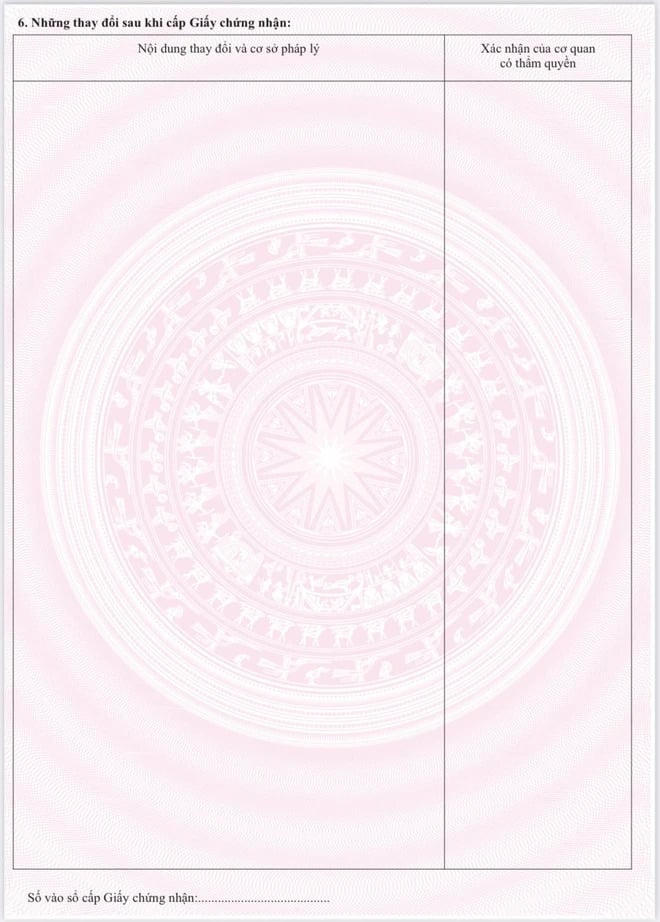 Giấy chứng nhận sẽ bao gồm một tờ có 2 trang, được in nền hoa văn trống đồng màu hồng cánh sen (được gọi là phôi Giấy chứng nhận), với kích thước 210x297mm.