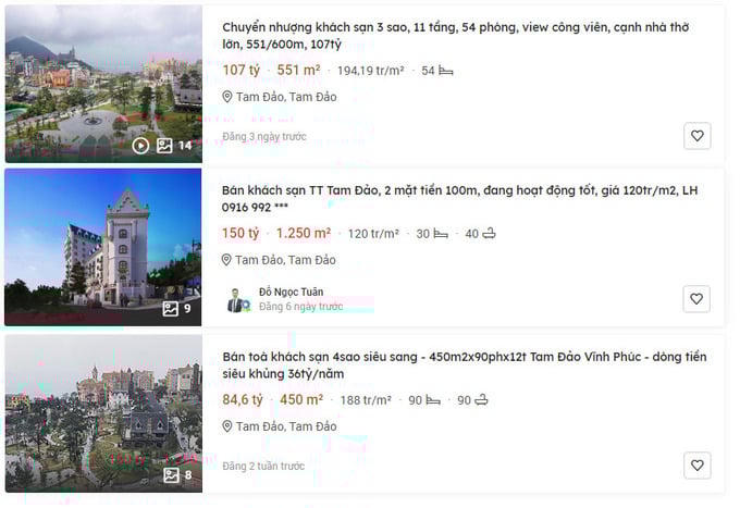Một chủ khách sạn thị trấn Tam Đảo trả lời phỏng vấn trên tạp chí Người đưa tin, khách sạn của anh có diện tích 551m2 đang được chào bán với mức giá 107 tỷ đồng (197 triệu đồng/m2). Một số căn xung quanh dù chỉ là đất thuê 50 năm, cũng đã có giá mua bán lên đến hơn 160 triệu đồng/m2.