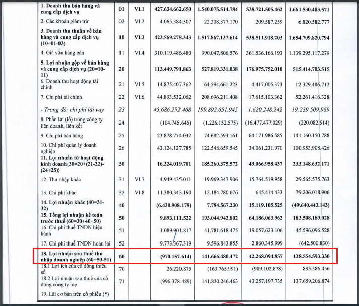 Bên cạnh đó, chi phí bán hàng và quản lý doanh nghiệp giảm 32%, tương ứng giảm 31 tỷ đồng về 67 tỷ đồng; lợi nhuận khác ghi nhận lỗ hơn 6 tỷ đồng so với cùng kỳ lãi 15 tỷ đồng.