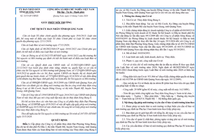 Tổng kinh phí xây dựng 674 tỷ đồng, Nhà máy thủy điện Sông Bung 6 là dự án thủy điện bậc thang cuối cùng của dòng Sông Bung thuộc hệ thống thủy điện trên sông Vu Gia – Thu Bồn. Dự án này cũng vừa được UBND tỉnh Quảng Nam cấp giấy phép môi trường vào ngày 13/5/2024.