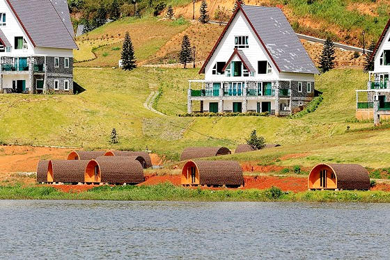 Nhiều khu nghỉ dưỡng mới vẫn đang được xây dựng, tầm nhìn hướng ra hồ Tuyền Lâm.