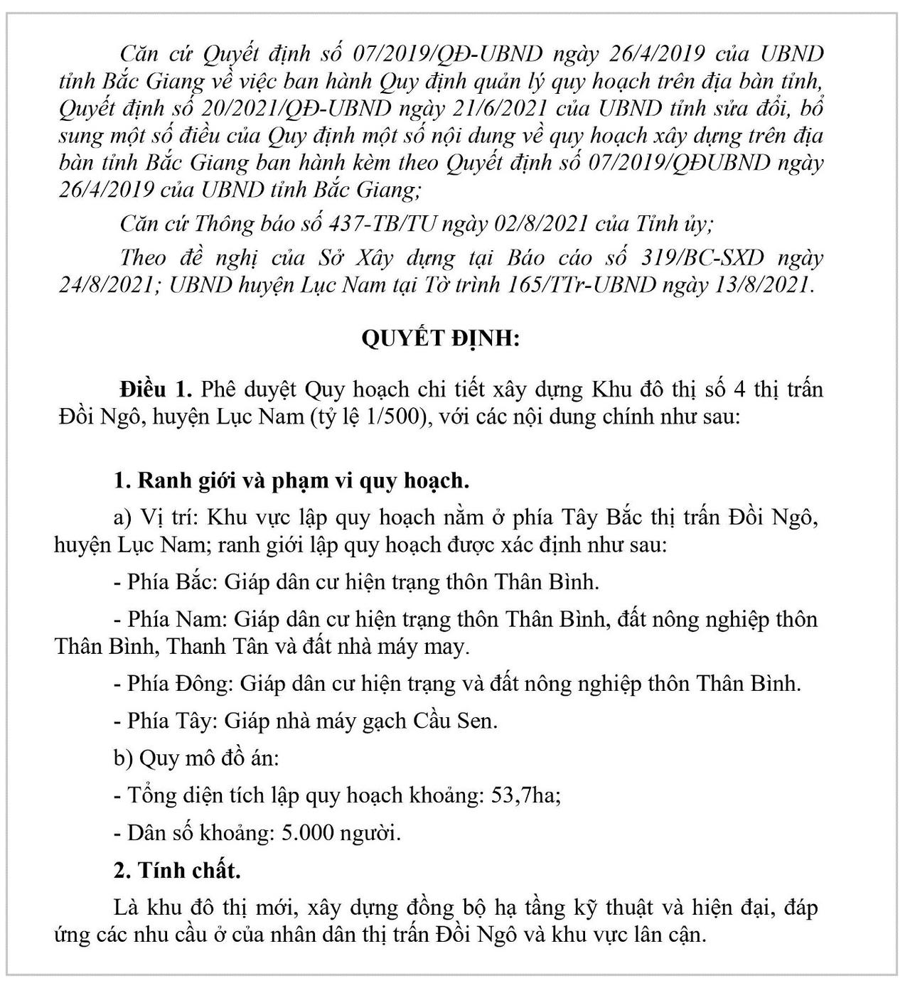 Ngoài ra UBND tỉnh Bắc Giang cũng phê duyệt quy hoạch chi tiết 1/500 đối với Khu đô thị số 12 thị trấn Đồi Ngô. Được biết quy mô nghiên cứu quy hoạch khoảng hơn 24 ha, dân số khoảng 2.600 người.