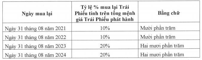 Với kỳ hạn 5 năm, ngày đáo hạn là 31/8/2025. Lãi trái phiếu được trả sau, định kì tròn 6 tháng liên tục kể từ ngày phát hành.
