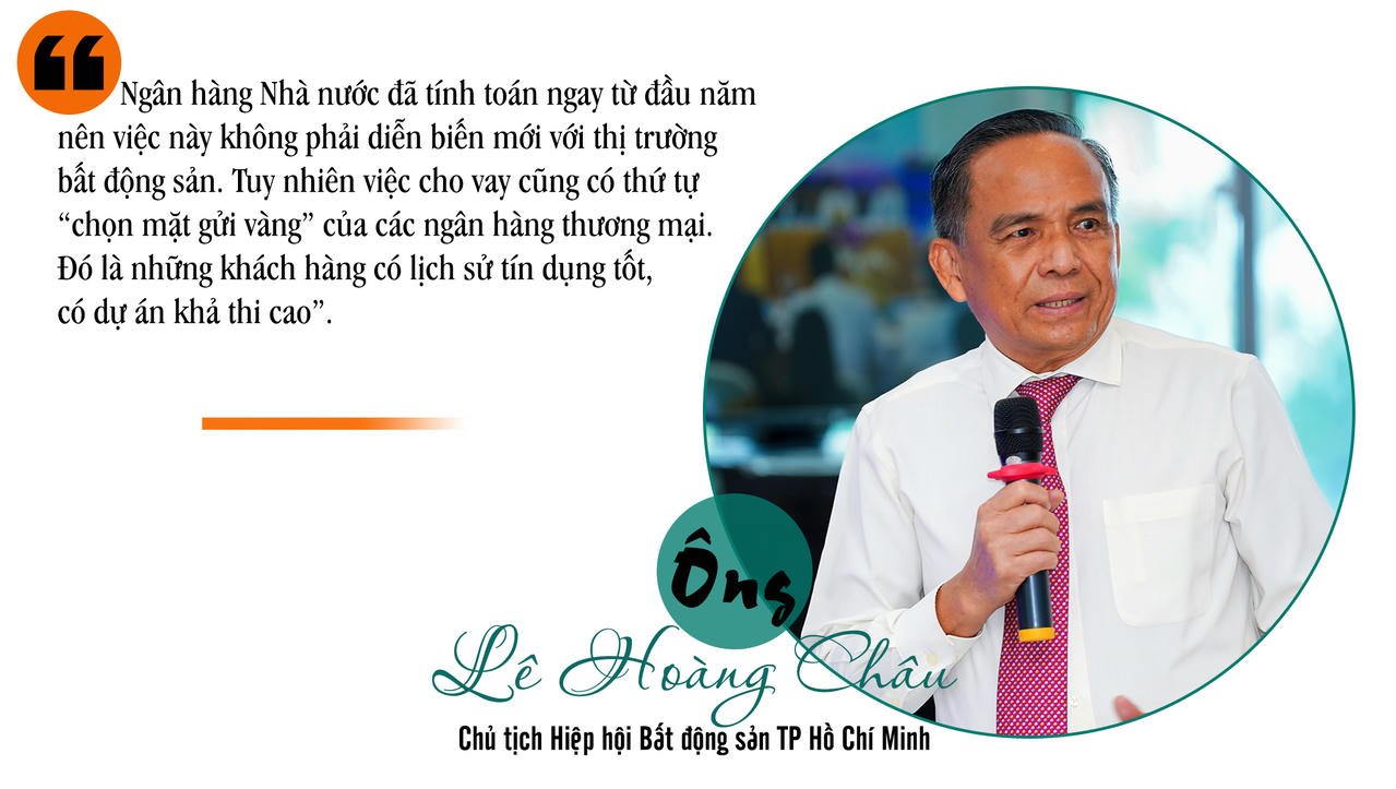 Ông Lê Hoàng Châu - Chủ tịch Hiệp hội Bất động sản TP Hồ Chí Minh nói: "Chúng tôi đề nghị Ngân hàng Nhà nước chỉ đạo hệ thống ngân hàng thương mại vẫn tiếp tục xem xét giải quyết nguồn vốn tín dụng cho các doanh nghiệp mà đây là các doanh nghiệp - khách hàng tin cậy của các ngân hàng. Tức khách hàng có uy tín về tín dụng, những khách hàng thanh toán lãi, trả nợ vay đúng hạn".
