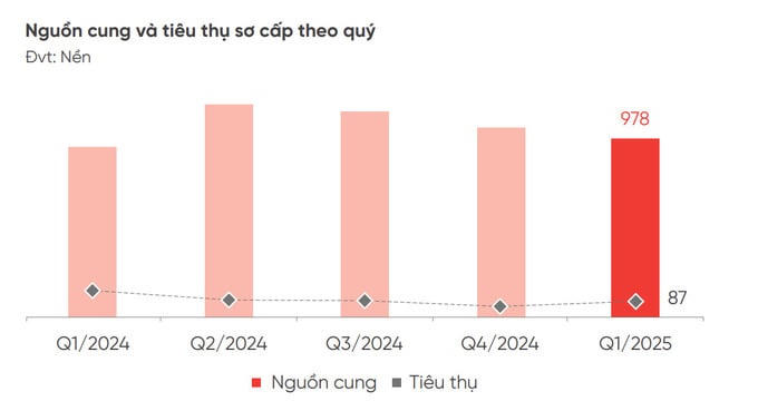 “Nguồn cung mới vẫn duy trì tình trạng khan hiếm và chưa có dấu hiệu phục hồi trong ngắn hạn. Sức cầu thị trường vẫn duy trì ở mức thấp, lượng tiêu thụ giảm khoảng 39% so với quý 1/2024. Mặt bằng giá sơ cấp ghi nhận mức tăng trung bình 7% so với thời điểm cuối năm 2024, trong khi thị trường giá thứ cấp đạt mức tăng phổ biến 6% - 9% so với quý 4/2024”, DKRA Consulting ghi nhận.