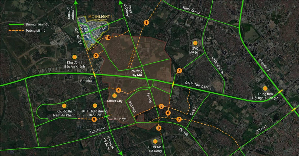 Tuyến số 10 với độ rộng từ 17 – 21,5m kết nối từ đường Tây Mỗ qua khu Viglacera Xuân Phương, làng giáo dục Quốc tế, Miêu Nha, đường ven sông Cầu Ngà và kết thúc ở Đại lộ Thăng Long.