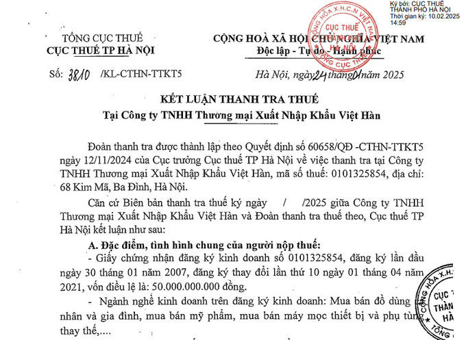 Theo kết luận thanh tra, mặc dù công ty đã thực hiện đầy đủ các quy định kê khai và nộp thuế, nhưng vẫn phát hiện một số vị phạm trong lĩnh vực thuế. Cụ thể:Công ty đã kê khai khấu trừ thuế GTGT đầu vào từ các doanh nghiệp không liên quan đến hoạt động sản xuất kinh doanh. Kết quả là công ty phải điều chỉnh giảm số thuế GTGT được khấu trừ chuyển kỳ sau là 33,3 tỷ đồng.Công ty không có đầy đủ hồ sơ chứng từ cho một số chi phí mua vào. Ngoài ra, một phần chi phí lãi vay không phục vụ cho sản xuất kinh doanh cũng được đưa vào chi phí hợp lý, vi phạm quy định.Công ty chưa khấu trừ thuế TNCN đối với nhân viên hợp đồng dưới 3 tháng và không thực hiện khấu trừ thuế cho các khoản chi trả trên 2 triệu đồng. Họ cũng kê khai thiếu thu nhập để tính thuế cho một số cá nhân.Công ty đã sử dụng hóa đơn từ các đơn vị đã ngừng hoạt động. Kết quả là phải điều chỉnh giảm thuế GTGT đầu vào và chi phí liên quan tới 4 hóa đơn có tổng giá trị hàng hóa là 12,96 triệu đồng.Công ty phải nộp tổng số tiền truy thu là 1,7 tỷ đồng, bao gồm 1,2 tỷ đồng truy thu thuế, 270 triệu đồng phạt vi phạm hành chính và 184 triệu đồng tiền chậm nộp.