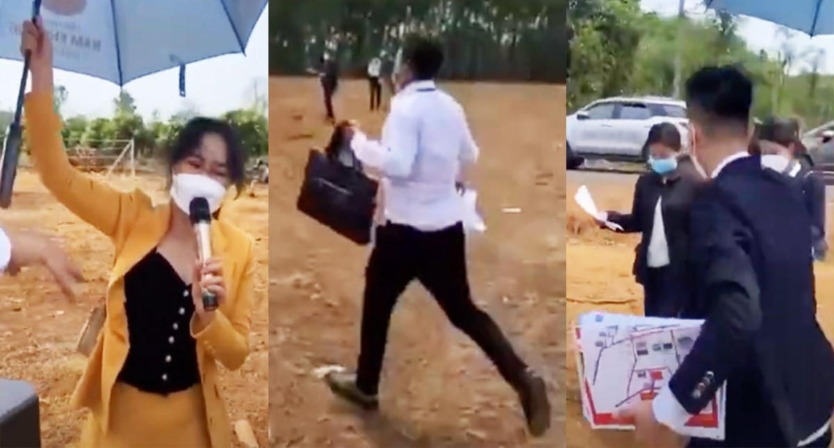 Trước đó, ngày 21/2, mạng xã hội lan truyền đoạn clip dài khoảng 4 phút ghi lại cảnh lãnh đạo và nhân viên BĐS mặc vest, tay cầm cặp sách hoặc hồ sơ đang nhốn nháo, chạy đôn chạy đáo tranh giành nhau để chốt cọc đất cho khách hàng tại một bãi đất trống, chỉ dựng rạp mái che tạm bợ, bên cạnh có hàng chục chiếc ô tô đang đậu.