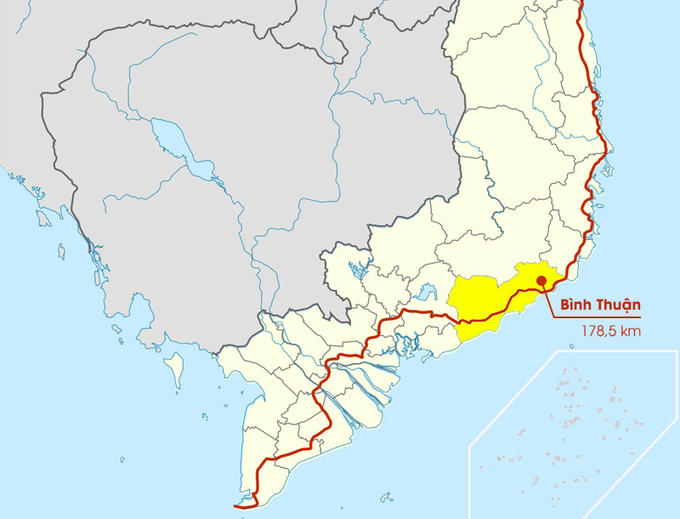 Mặc dù không có diện tích lớn nhất cả nước, nhưng chiều dài của tỉnh này là rất đáng kinh ngạc. Bình Thuận cũng là một trong năm tỉnh thành có đường bờ biển dài nhất Việt Nam.