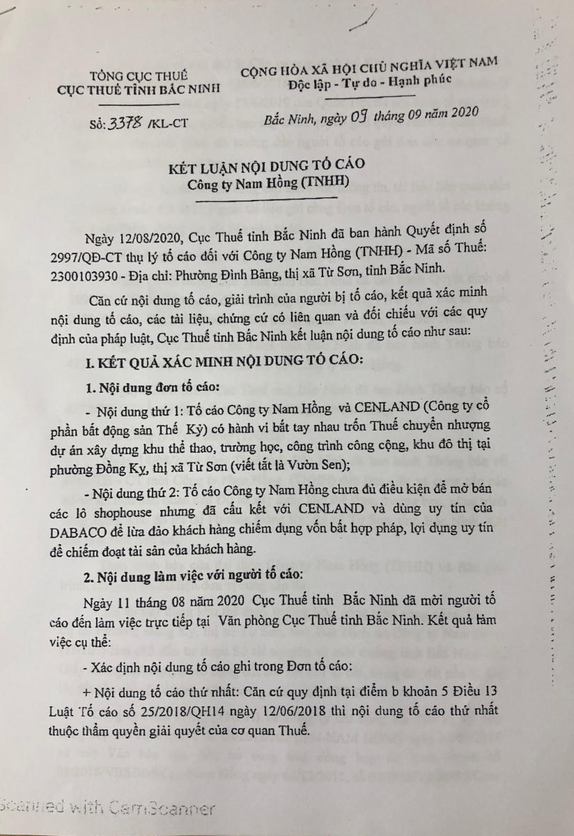 Về vấn đề này, ngày 9/9/2020, Cục Thuế tỉnh Bắc Ninh đã ban hành Kết luận nội dung tố cáo Công ty TNHH Nam Hồng do ông Ngô Xuân Tòng, Cục trưởng ký.
