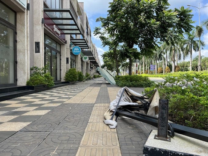 Các dãy nhà phố hoàn chỉnh trong dự án đã treo bảng tên cửa hàng, doanh nghiệp nhưng cũng không thấy hoạt động, đồ đạc đổ chỏng chơ, khung cảnh vắng vẻ thiếu bóng dáng người về sinh sống.