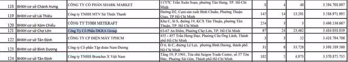 Cụ thể, Công ty cổ phần DKRA Group đang chậm đóng hơn 3,5 tỷ đồng BHXH, kéo dài 23 tháng, liên quan đến 67 lao động. Công ty cổ phần DKRA Vega ghi nhận số tiền chậm đóng gần 2,7 tỷ đồng trong 18 tháng, ảnh hưởng đến 116 người lao động. Trong khi đó, Công ty cổ phần DKRA Rigel chậm đóng hơn 450 triệu đồng trong 7 tháng, với 47 lao động.