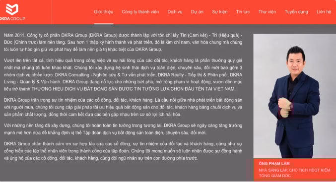 Theo giới thiệu trên website doanh nghiệp, Công ty cổ phần DKRA Group được thành lập năm 2011 với quy mô ban đầu 25 nhân sự và giá trị giao dịch đạt 35 tỷ đồng. Chỉ một năm sau, vào 2012, công ty tăng lên 45 nhân sự và ghi nhận 300 tỷ đồng giao dịch thành công. Đến năm 2015, doanh nghiệp thành lập bộ phận R&D với 150 nhân sự.