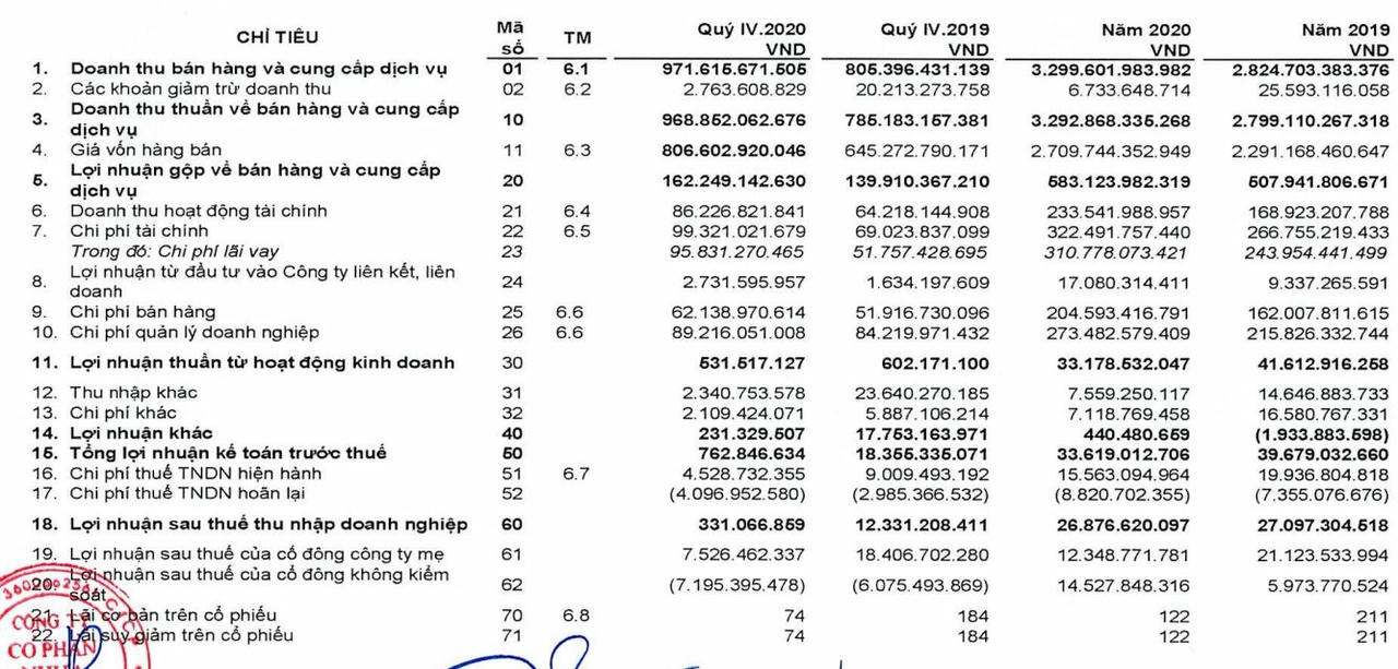 Theo BCTC hợp nhất quý 4/2020, doanh thu thuần tại Công ty Cổ phần Nhựa Đồng Nai (DNP Corp - Mã: DNP) trong năm 2020 tăng 18% so với năm trước, đạt gần 3.293 tỷ đồng, biên lãi gộp tương đương năm 2019 đạt 18%.