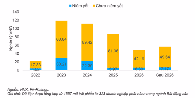 Mặc dù tích cực mua lại trái phiếu đã phát hành sau khi xảy ra sự kiện liên quan đến tập đoàn Tân Hoàng Minh và Vạn Thịnh Phát, nhưng áp lực trả nợ trái phiếu đáo hạn đối với nhiều doanh nghiệp bất động sản trong hai năm tới vẫn duy trì đáng kể.