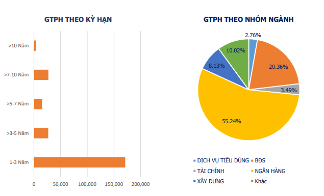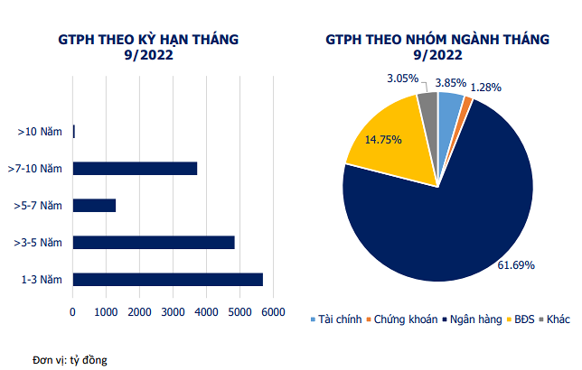 Nhóm ngân hàng dẫn đầu về giá trị phát hành với tổng giá trị đạt gần 134.892 tỷ đồng, tương đương 55% tổng giá trị phát hành. Nhóm bất động sản đứng ở vị trí thứ hai với 49.710 tỷ đồng, chiếm 20%. Lãi suất phát hành trung bình của nhóm này là gần 10,35%/năm.