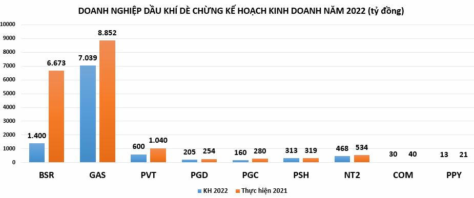 Ở mảng phân phối khí đốt, Gas Petrolimex (mã: PGC) tạm thông qua kế hoạch kinh doanh năm 2022 với lợi nhuận trước thuế hợp nhất dự phóng đi ngang so với năm 2021, đạt 160 tỷ đồng. Doanh thu đạt 3.529 tỷ đồng, tăng nhẹ 5% so với năm 2021.