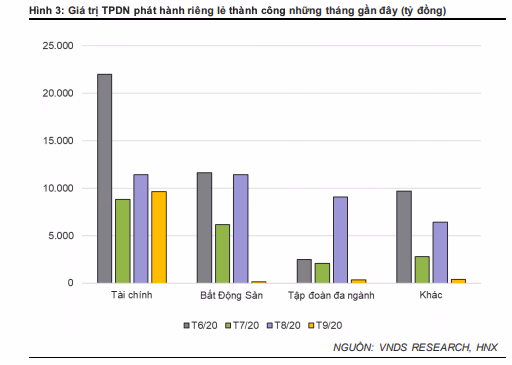 VNDIRECT cho rằng, nguyên nhân khiến thị trường TPDN hạ nhiệt trong tháng 9 đến từ việc Nghị định 81/2020/NĐ-CP chính thức có hiệu lực từ ngày 01/09/2020 đã thắt chặt các điều kiện phát hành trái phiếu doanh nghiệp như tiêu chuẩn đối với tổ chức phát hành, giới hạn số lượng nhà đầu tư, thêm điều kiện đối với các tổ chức tư vấn phát hành.
