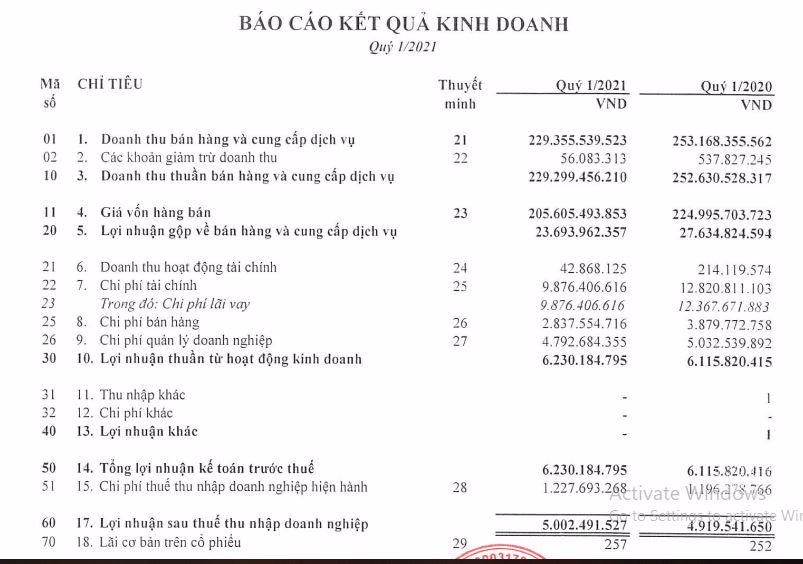 Kết thúc quý 1/2021, VIT tiếp tục ghi nhận doanh thu thuần giảm 9% so với cùng kỳ, đạt 229 tỷ đồng. Lợi nhuận sau thuế chỉ tăng nhẹ 2% lên mức 5 tỷ đồng.