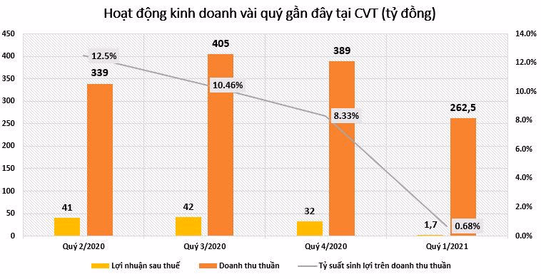 Tuy nhiên, nếu so sánh với các quý gần đây có thể thấy doanh thu và lợi nhuận tại CVT đều giảm mạnh.
