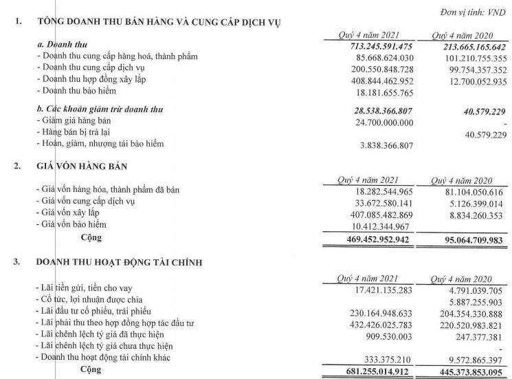 Trong đó, nhóm ngành cơ sở hạ tầng đóng góp chủ đạo cho sự tăng trưởng trên với việc hoàn thành 96% chỉ tiêu doanh thu năm đề ra. Mảng bất động sản trong quý 4/2021 cũng đã ghi nhận phần doanh thu còn lại của dự án khu biệt thự King Crown Village.