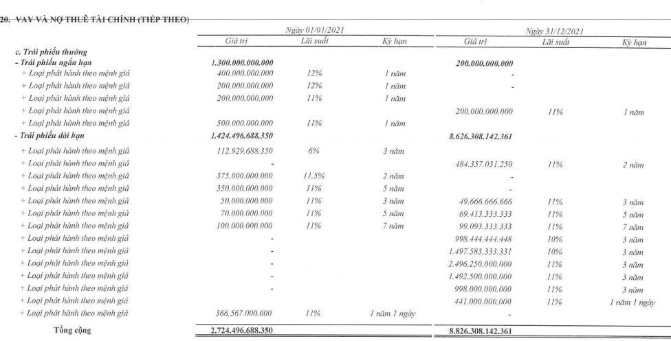 Đặc biệt, tại thời điểm 31/12/2021 BCG có khoản nợ trái phiếu 8.826 tỷ đồng, gấp 3,2 lần đầu năm. Đây chính là nguyên nhân chính khiến nợ vay tại BCG tăng mạnh. Chứng khoán Tiên Phong, Chứng khoán Sài Gòn – Hà Nội, Chứng khoán Bảo Minh là đối tác làm đại lý lưu ký, tư vấn phát hành cho đa phần các khoản nợ trái phiếu này. Các lô trái phiếu của BCG có lãi suất từ 10% - 11%, kỳ hạn từ 1 năm đến 7 năm.