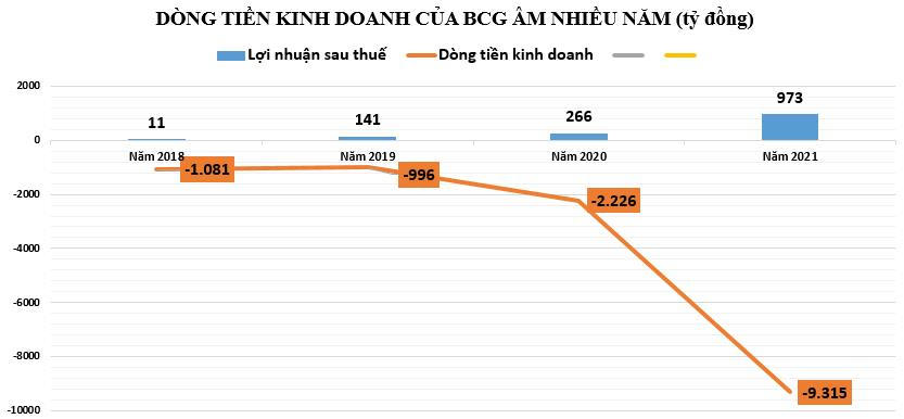 Dòng tiền kinh doanh âm dẫn tới BCG phải tăng cường vay nợ. Năm 2021, tiền thu từ đi vay của BCG là 14.197 tỷ đồng, tăng 153%; tiền trả nợ gốc vay gần 6.370 tỷ đồng, tương tăng 237%.
