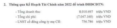 Sau năm kinh doanh thua lỗ, CTCP Đầu tư Hạ tầng Kỹ thuật Tp.HCM (CII) cũng vừa công bố kế hoạch kinh doanh năm 2022 với doanh thu dự đạt hơn 8.010 tỷ đồng, cao gấp 2,7 lần so với kết quả năm 2021. Khấu trừ chi phí, lợi nhuận sau thuế cổ đông công ty mẹ mục tiêu đạt gần 757 tỷ, tăng mạnh so với phần lỗ ròng là 341 tỷ đồng năm 2021 và cũng là mức cao nhất từ năm 2018 tới đây.
