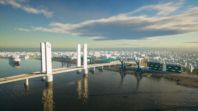 Với thiết kế này, khi có tàu thuyền trọng tải lớn cần đi qua khu vực, nhịp cầu sẽ được nâng lên 45m để tạo ra không gian dễ dàng di chuyển. Đây là kỹ thuật chưa có ở nước ta, trong khi nhiều nước trên thế giới đưa vào khai thác dạng cầu này.