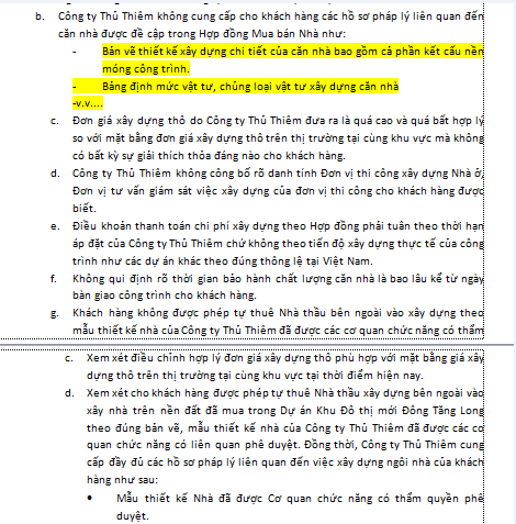 Tuy nhiên, những lô đất của những khách hàng còn lại phải do CĐT xây dựng và điều bất hợp lý là đơn giá xây dựng thô do Công ty Thủ Thiêm đưa ra là quá cao và quá bất hợp lý so với mặt bằng đơn giá xây dựng thô trên thị trường tại cùng khu vực....