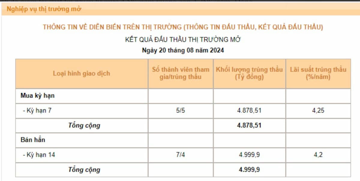 Phiên giao dịch 20/8 chứng kiến diễn biến đáng chú ý trên thị trường tiền tệ khi nhà điều hành tiến hành giảm lãi suất trúng thầu tín phiếu.