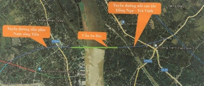 Ngoài ra, để tạo sự kết nối với các tuyến đường nam sông Tiền và đường liên kết vùng nêu trên, đồng thời phát triển giao thương và kết nối vào tuyến cao tốc An Hữu - Cao Lãnh chuẩn bị đầu tư, tỉnh Đồng Tháp đề nghị hỗ trợ xây cầu Sa Đéc vượt qua sông Tiền nối huyện Cao Lãnh và TP Sa Đéc dài 2,5 km quy mô bề rộng mặt cầu 20,5 m và đường dẫn hai đầu cầu dài 11 km với tổng mức đầu tư gần 8.009 tỷ đồng trong giai đoạn 2026 - 2031, dự kiến đưa vào khai thác trong năm 2031.