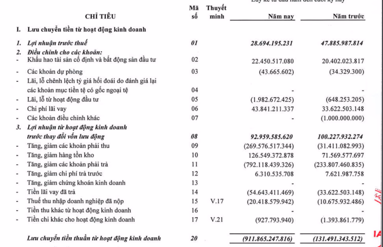 Dòng tiền kinh doanh âm, sử dụng đòn bẩy vay nợ cao