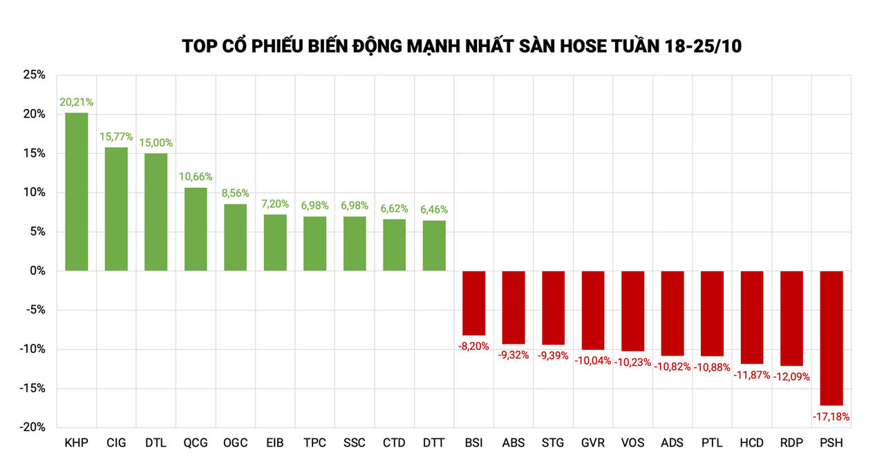 Kết quả kinh doanh quý III khởi sắc là động lực tăng trưởng của nhiều mã nhóm cổ phiếu tăng mạnh tuần qua, chẳng hạn như KHP, BCK, HCT,...