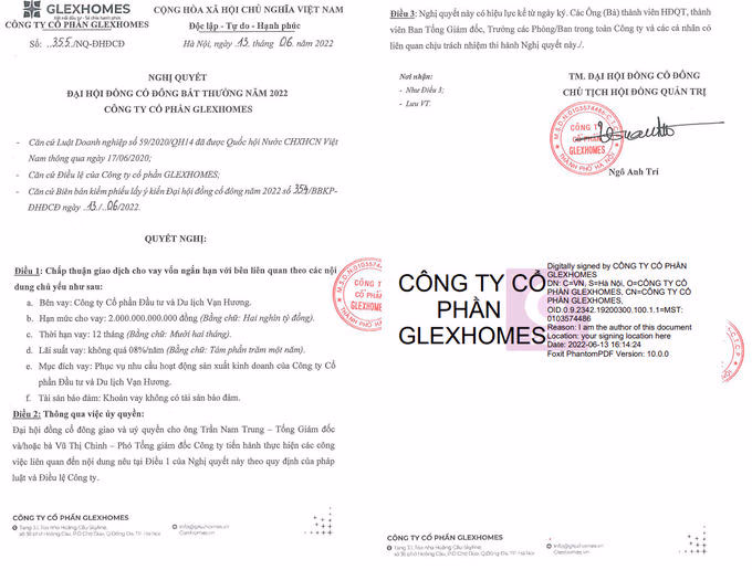 Mới đây, HĐQT CTCP Glexhomes vừa công bố thông tin về việc lấy ý kiến cổ đông bằng văn bản với nội dung cho CTCP Đầu tư và Du lịch Vạn Hương (doanh nghiệp liên quan đến Tập đoàn Geleximco) vay 2.000 tỷ đồng trong thời hạn 12 tháng, lãi suất vay không quá 8%/năm và không có tài sản bảo đảm. Mục đích vay của Vạn Hương là phục vụ nhu cầu hoạt động sản xuất kinh doanh.
