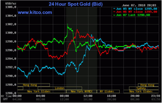 Ở thời điểm cập nhật lúc 7h03 sáng theo giờ Việt Nam, giá vàng giao ngay đang ở mức 1.296,60 USD/ounce, tăng 70 cent so với mức chốt phiên hôm thứ Tư là 1.295,90 USD/ounce.