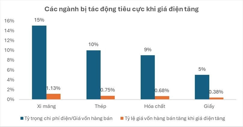 Ngược lại, các doanh nghiệp sản xuất sử dụng nhiều điện như thép, xi măng, giấy, hóa chất… sẽ phải đối mặt với áp lực tăng chi phí đầu vào, kéo theo khả năng suy giảm biên lợi nhuận trong ngắn hạn.
