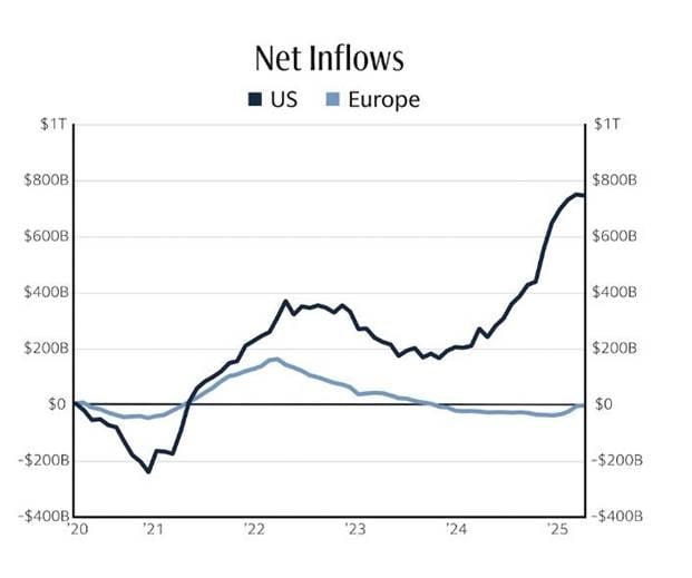 Mức chênh lệch giữa dòng vốn vào Mỹ và châu Âu – vốn mở rộng kể từ sau đại dịch Covid-19 – đang thu hẹp trở lại được kỳ vọng sẽ đảo chiều thu hẹp trong giai đoạn toán khi lo ngại nền kinh tế Mỹ sẽ đối mặt nhiều khó khăn về lạm phát và kinh tế châu Âu đang dần hồi phục sau giai đoạn hạ nhiệt lạm phát thành công.
