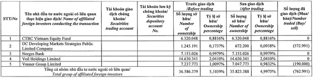 Ngược chiều, quỹ ngoại VOF Investment Limited (một quỹ thành viên thuộc VinaCapital), đơn vị có liên quan đến bà Nguyễn Thị Diệu Phương, Thành viên HĐQT và bà Vương Hoàng Thảo Linh, Thành viên Ban kiểm soát, mới đăng ký mua 10 triệu cổ phiếu KDH với mục đích cơ cấu danh mục đầu tư. Thời gian thực hiện dự kiến từ ngày 31/10 đến ngày 29/11. Nếu giao dịch thành công, tỷ lệ sở hữu của tổ chức này tại Khang Điền tăng từ 0% lên 1,41% vốn điều lệ.