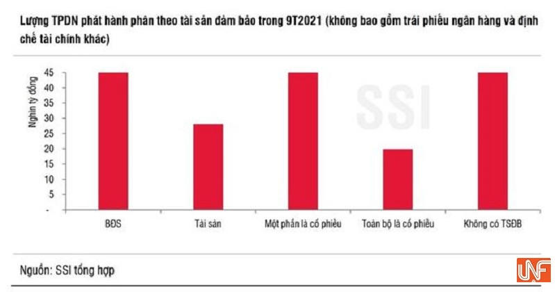 Theo SSI, câu chuyện về “bom nợ" Evergrande đã khiến nhiều nhà đầu tư bắt đầu để ý hơn tới tài sản đảm bảo cho trái phiếu doanh nghiệp. Trong khi đó, chất lượng tài sản bảo đảm của thị trường trái phiếu doanh nghiệp tại Việt Nam còn nhiều hạn chế. Trái phiếu không tài sản đảm bảo hoặc đảm bảo bằng cổ phiếu đang chiếm tỷ lệ cao.